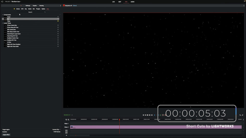 Although this Short Cuts is specifically just about rolling title effects, the majority of what you'll see can also be applied to the crawl and title versions of the effect.